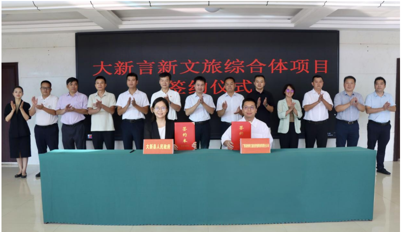 大新县人民政府签约代表卢芳菲与广西英维特文旅投资管理有限责任公司签约代表言志军共同签订《大新言新文旅综合体项目投资意向协议书》。