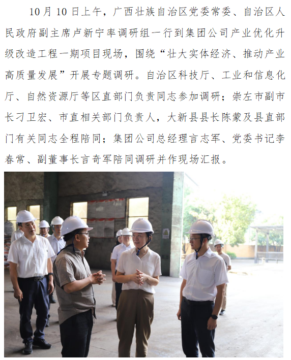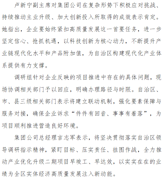 自治区党委常委、副主席卢新宁到集团公司开展实体经济专题调研