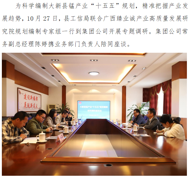 县工信局联合广西臻业诚产业高质量发展 研究院规划编制专家组一行到 集团公司开展专题调研
