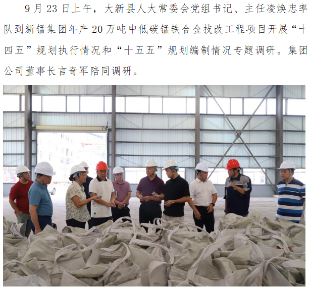大新县人大常委会党组书记、主任凌焕忠率队到新锰集团开展“十四五”规划执行情况和“十五五”规划编制情况专题调研