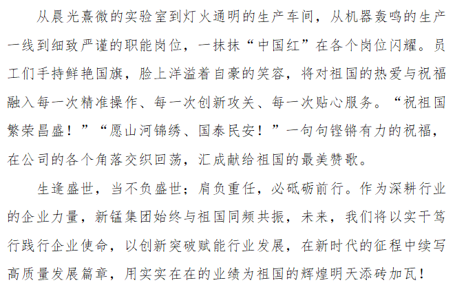 同心贺华诞 奋进向未来 — —新锰集团员工共祝祖国繁荣昌盛